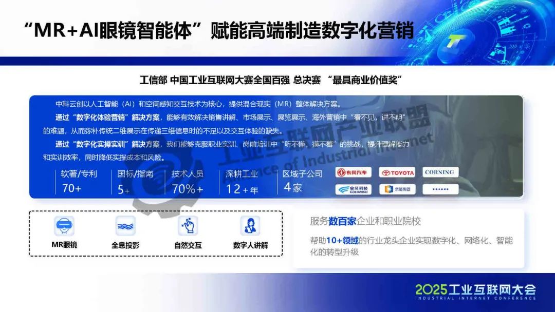 王哲介紹,中科云創(chuàng)針對高端制造營銷轉(zhuǎn)型困境,提出"產(chǎn)品+服務(wù)"和"銷售+服務(wù)"全鏈路解決方案,推動從單純賣設(shè)備向全周期價值服務(wù)升級,通過"MR+AI眼鏡智能體"技術(shù)賦能,實現(xiàn)從訂單交付到客戶全周期運營的數(shù)字化營銷轉(zhuǎn)型,典型實踐驗證了其有效性,未來將致力于打通"制造-銷售-服務(wù)"全鏈條協(xié)同。
