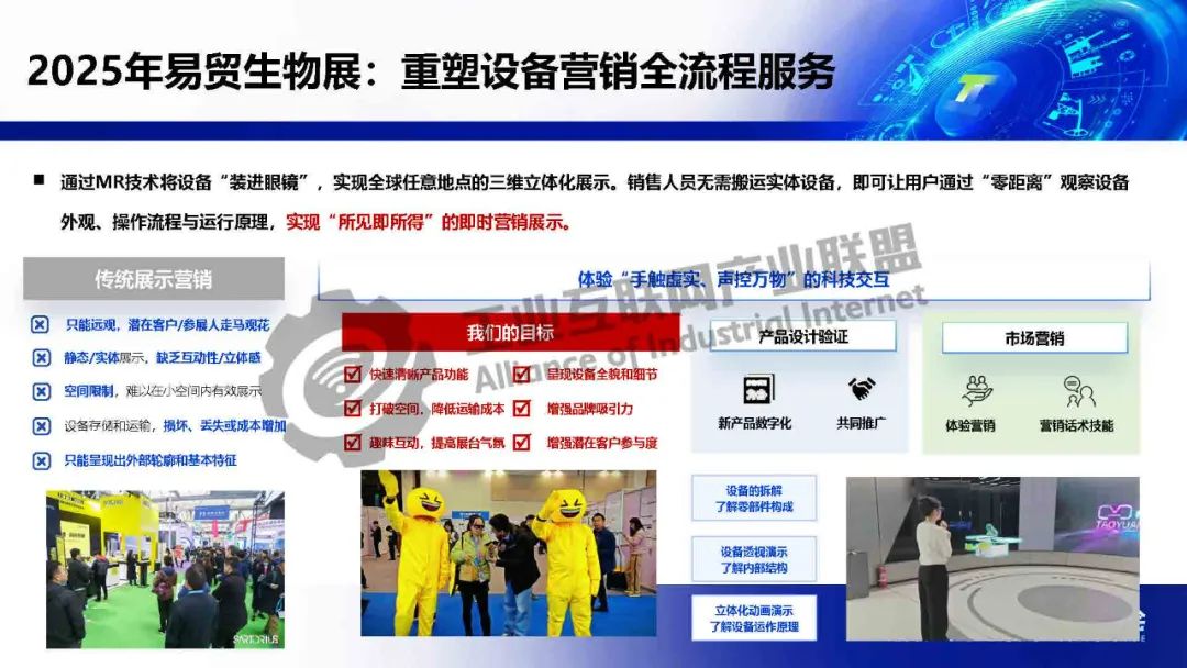 設(shè)備營銷全流程服務(wù)打破傳統(tǒng)營銷方式,通過MR技術(shù)將設(shè)備“裝進(jìn)眼鏡”,實現(xiàn)全球任意地點的三維立體化展示。銷售人員無需搬運實體設(shè)備,即可讓用戶通過“零距離”觀察設(shè)備外觀、操作流程與運行原理,實現(xiàn)“所見即所得”的即時營銷展示。