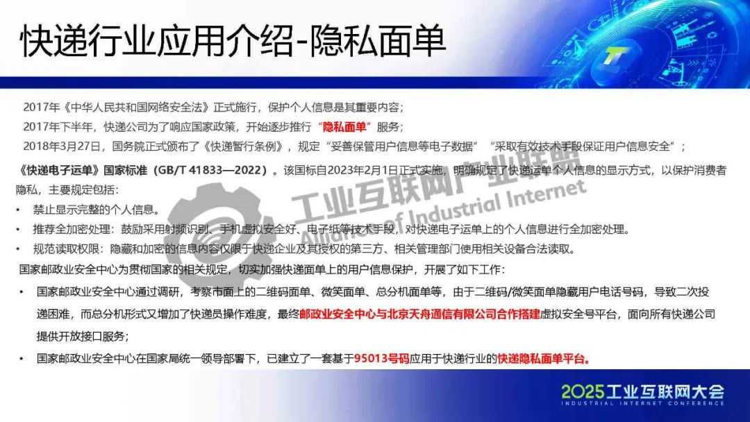 5月23日,在2025工業互聯網大會“工業互聯網標識解析貫通專題活動”上,北京天舟通信有限公司副總經理孫大成發表了《基于“標識+號碼呼叫”的郵政快遞行業數據管理及應用》的主題演講。