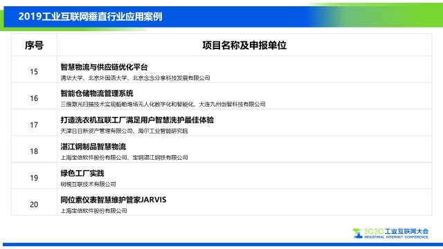 自 2019 年 10 月發(fā)布征集通知后,共收到來自 16 個(gè)企業(yè)申報(bào)的 25 個(gè)應(yīng)用案例,項(xiàng)目包括制造與工藝管理、產(chǎn)品研發(fā)設(shè)計(jì)、資源配置協(xié)同、企業(yè)運(yùn)營管理、生產(chǎn)過程管控、設(shè)備管理服務(wù)六大工業(yè)互聯(lián)網(wǎng)主要應(yīng)用場景,覆蓋輕工家電、船舶、機(jī)械、紡織、石化、電子信息、航空航天、鋼鐵、醫(yī)療等十幾個(gè)行業(yè)領(lǐng)域。經(jīng)評審,共遴選出 20 份具有典型示范效應(yīng)案例,具體名單及詳情如下: