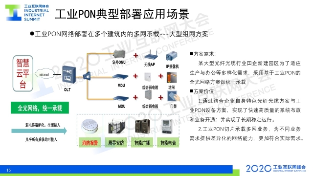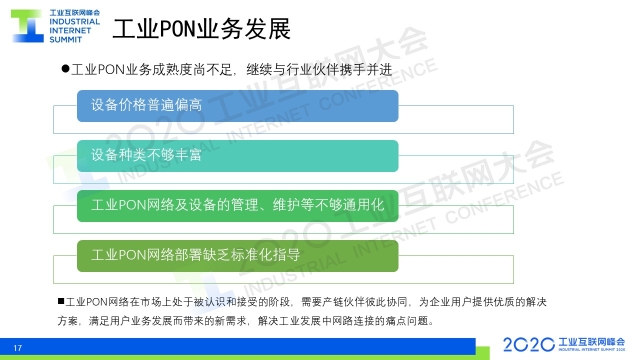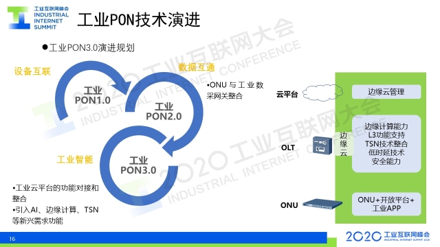 8月31日下午,在2020工業(yè)互聯(lián)網(wǎng)大會(huì)“工業(yè)互聯(lián)網(wǎng)產(chǎn)業(yè)聯(lián)盟成果發(fā)布”活動(dòng)上,《工業(yè)PON2.0白皮書(shū)》正式發(fā)布。中國(guó)電信股份有限公司研究院光接入網(wǎng)絡(luò)研發(fā)技術(shù)總監(jiān)、光學(xué)工程博士金嘉亮對(duì)白皮書(shū)進(jìn)行了解讀。