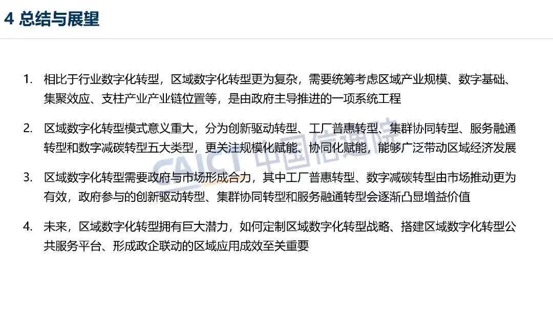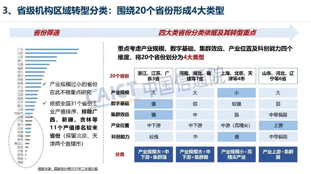 2023年1月7日,“2023年中國信通院ICT+深度觀察報告會-行業數字化轉型分論壇”在中國信息通信研究院成功舉辦。在論壇中,信息化與工業化融合研究所工業互聯網平臺與解決方案研究部分享了區域數字化轉型的相關研究成果,為產業界推進路徑提供了方向性參考。黨的二十大報告指出,要堅持把發展經濟的著力點放在實體經濟上,推動制造業高端化、智能化、綠色化發展。區域是產業高質量發展的關鍵載體,區域數字化轉型有望帶動區域產業鏈條化、集群化、規?;D型升級。基于此,信息化與工業化融合研究所工業互聯網平臺與解決方案研究部重點研究區域數字化轉型的關鍵路徑,對區域數字化轉型的背景、內涵、框架、模式等關鍵內容給出了分析研判,并結合區域產業稟賦,有針對性地對各類省級機構的轉型策略與路徑提出建議。當前我國區域數字化轉型正處于起步階段,應持續落實區域發展理念,探索規?;七M路徑。下一步,工業互聯網平臺與解決方案研究部將進一步深化相關研究工作,歡迎產業各界積極參與交流探討,共同推動區域產業高質量發展邁向新階段。