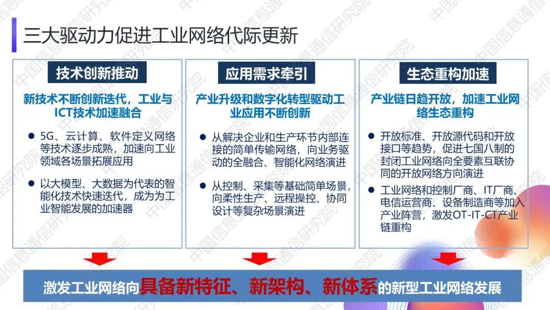 在2024年9月26日下午舉辦的“新型工業(yè)網(wǎng)絡(luò)創(chuàng)新論壇暨2024工業(yè)互聯(lián)網(wǎng)網(wǎng)絡(luò)創(chuàng)新大會(huì)”上,中國(guó)信息通信研究院技術(shù)與標(biāo)準(zhǔn)研究所副所長(zhǎng)湯立波發(fā)布了《新型工業(yè)網(wǎng)絡(luò)體系架構(gòu)》,并對(duì)該架構(gòu)進(jìn)行了深度解讀。