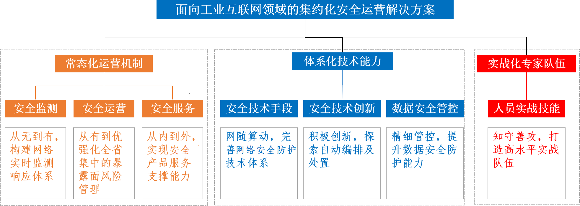 本方案為進一步提升工業互聯網領域的安全應急響應、安全運營能力,致力打造集約化安全運營中心,開展工業互聯網企業集中的安全應急響應與運營工作。從流程優化、手段完善、人員培養等方面入手,重點提升企業網絡安全技術能力和實戰能力。
