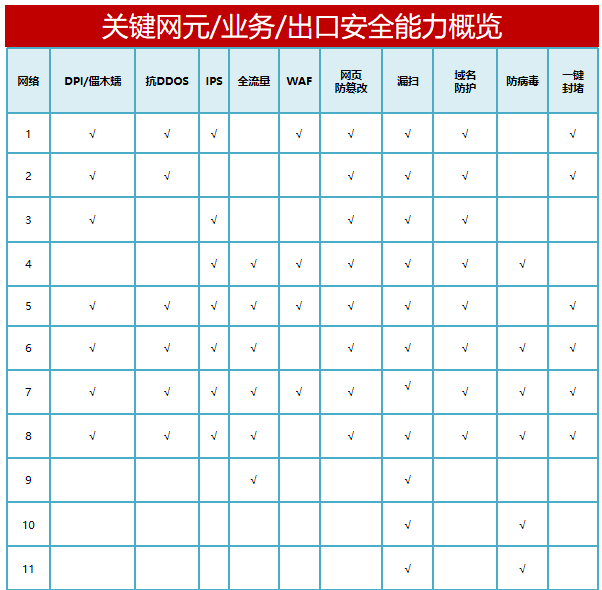 中國移動通信集團安徽有限公司以網絡為基礎,從安全防護平臺和設備上構建企業安全防護壁壘,全面覆蓋網絡設備、關鍵業務,強化公網暴露面的集中分析、研判和一鍵處置能力。實現防護能力的靈活性,做好對企業內賦能各部門、對外服務各類客戶、對上落實國家行業監管要求。