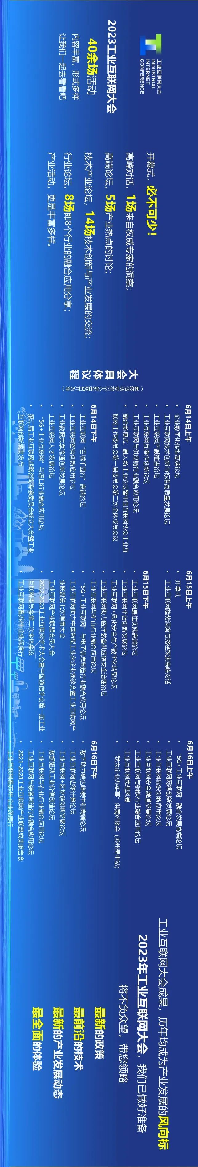 工業(yè)和信息化部、江蘇省人民政府主辦,中國信息通信研究院、江蘇省工業(yè)和信息化廳、江蘇省通信管理局、蘇州市人民政府、工業(yè)互聯(lián)網(wǎng)產(chǎn)業(yè)聯(lián)盟、中國通信學(xué)會、中國互聯(lián)網(wǎng)協(xié)會聯(lián)合承辦的2023工業(yè)互聯(lián)網(wǎng)大會,將于6月14-16日在江蘇省蘇州市舉辦。