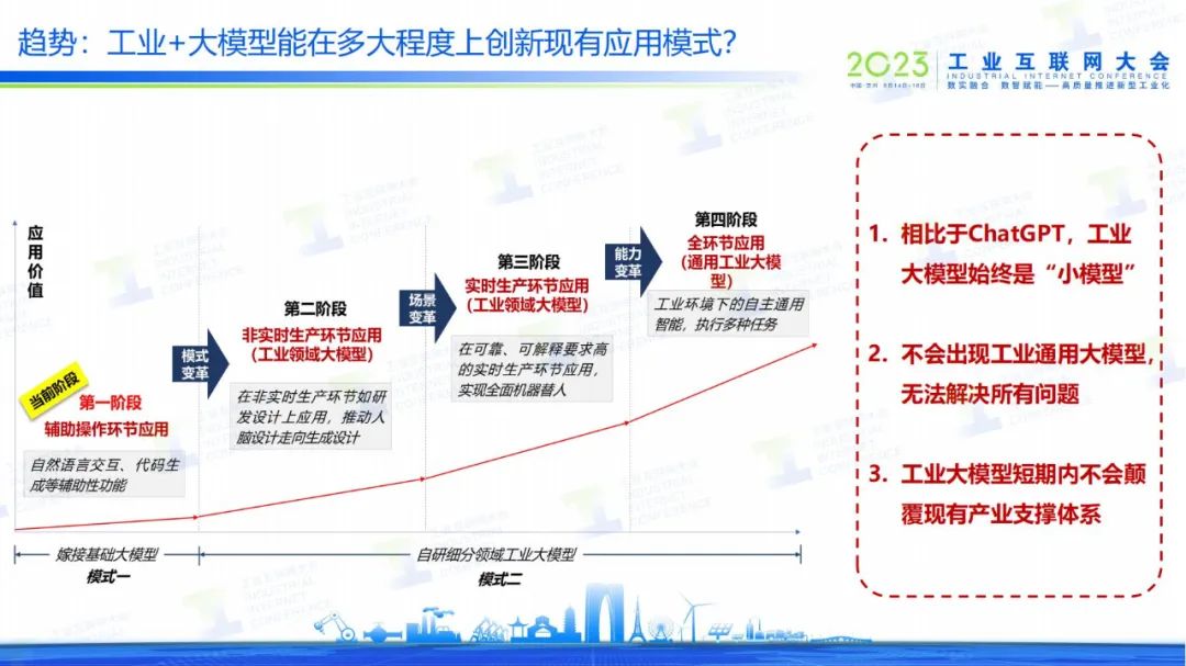 “當前工業(yè)大模型未來應用發(fā)展分為兩大模式、四個階段,但也面臨數(shù)據(jù)、產(chǎn)業(yè)等方面挑戰(zhàn)。他認為:工業(yè)大模型是在現(xiàn)有工業(yè)智能可解問題的范疇之內(nèi)提升效率或解決一些更深層次的問題,在短期內(nèi)應該不會顛覆現(xiàn)有的產(chǎn)業(yè)支撐體系,更多的還是以被疊加的特點融入現(xiàn)有的工業(yè)產(chǎn)品。”《工業(yè)智能白皮書》從體系內(nèi)涵、技術(shù)、應用和產(chǎn)業(yè)等維度進行了闡述。體系方面,對目前工業(yè)智能面臨的問題進行了總結(jié),提出了涵蓋三個視角的工業(yè)智能發(fā)展體系。技術(shù)方面,梳理了工業(yè)智能技術(shù)發(fā)展現(xiàn)狀,圍繞核心賦能技術(shù)創(chuàng)新與工程化突破兩個技術(shù)發(fā)展路徑進行深入分析。產(chǎn)業(yè)方面,梳理工業(yè)智能產(chǎn)業(yè)現(xiàn)狀與發(fā)展趨勢,對支撐工業(yè)賦能的核心技術(shù)產(chǎn)品進行分析。應用方面,總結(jié)工業(yè)智能應用發(fā)展總體歷程,從應用場景、國內(nèi)外應用與行業(yè)應用三個角度開展細化分析。