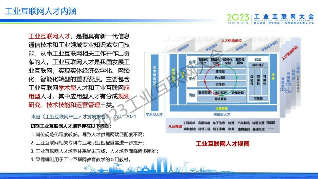 工業(yè)互聯(lián)網(wǎng)人才是我國發(fā)展工業(yè)互聯(lián)網(wǎng),實(shí)現(xiàn)實(shí)體經(jīng)濟(jì)數(shù)字化、網(wǎng)絡(luò)化、智能化轉(zhuǎn)型的重要資源。主要包含工業(yè)互聯(lián)網(wǎng)學(xué)術(shù)型人才和工業(yè)互聯(lián)網(wǎng)應(yīng)用型人才。其中應(yīng)用型人才有分成規(guī)劃研究、技術(shù)技能和運(yùn)營管理三類。
