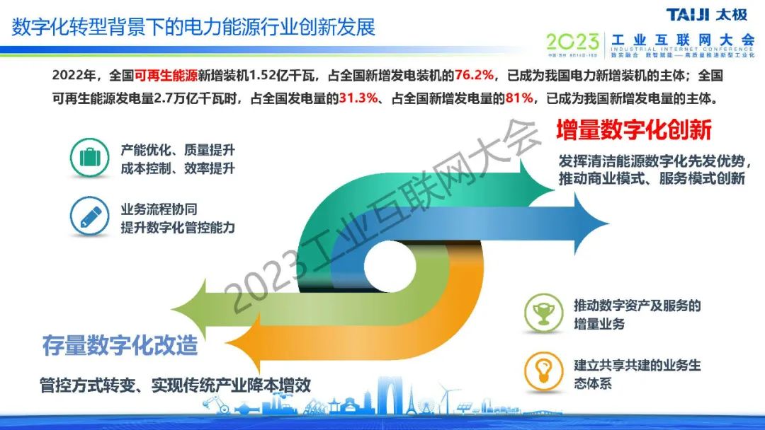近年來,太極股份聯合各生態合作伙伴在火電、水電、新能源、輸配電等領域積極推廣和落地工業互聯網應用場景,創新成果取得了新成效。隨著雙碳目標的持續推進,以新能源為主體的新型電力系統在電力生產、傳輸、消費方式等方面將面臨根本性變革,面對電力產業鏈的新變化,行業數據共享交換日漸成為剛性需求。通過構建數據分級分類存儲體系、數據脫敏安全保障能力,推動電力數據社會化共享應用,利用電力數據為企業、政府、社會公眾等各類需求方提供增值服務,有利于搭建良好的電力產業生態。
