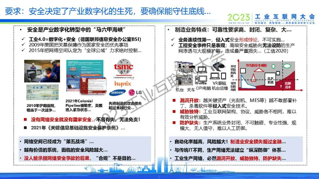 6月16日,在2023工業互聯網大會“工業互聯網安全融通發展論壇”上,華為技術有限公司安全技術總監、工業互聯網產業聯盟安全組副主席王雨晨發表了《構建高安全的韌性保障生產網》的主題演講。