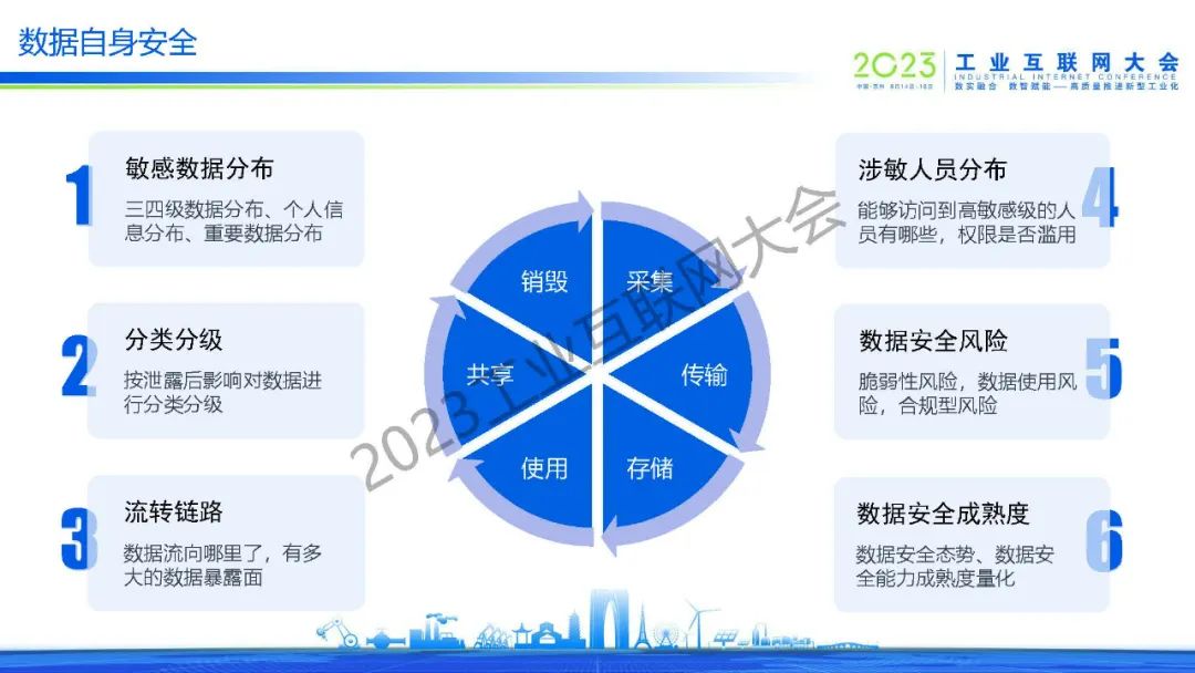 “遵循數據安全原則,以數據安全分級為基礎,實現覆蓋數據生命周期全過程的數據自身安全,并結合業務活動安全、基礎安全、安全運營,建立“三橫三縱”的工業互聯網數據安全防護體系,全面加強工業數據安全保護能力。”