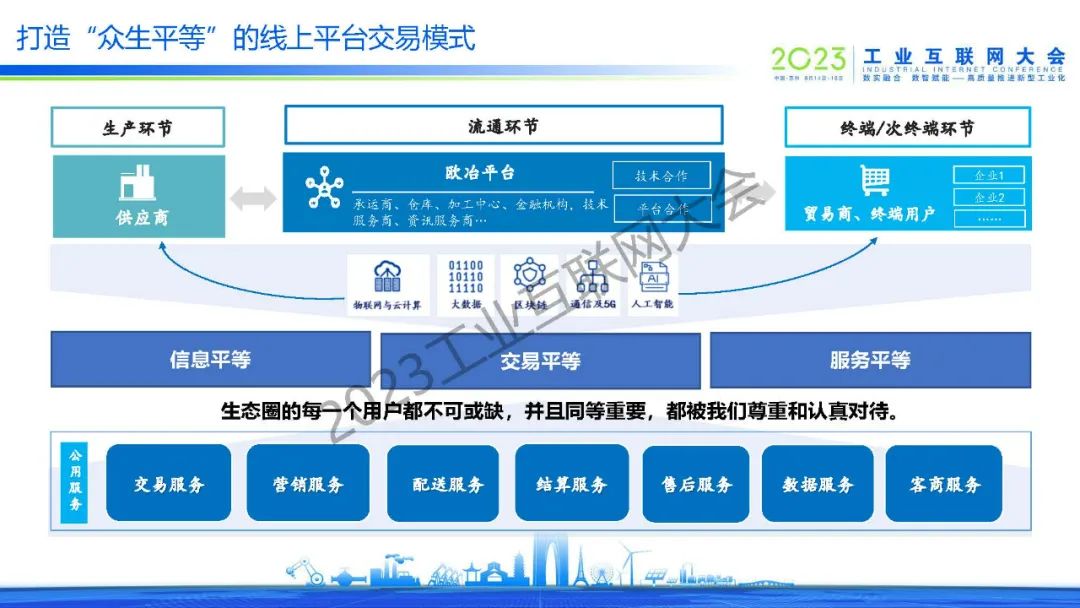 金文海表示,歐冶平臺致力打造“眾生平等”的線上平臺交易模式,運用區塊鏈新技術助力行業信用體系建設,創新互聯網營銷模式助力生態圈智慧營銷升級,運用算法模型滿足鋼鐵制造和供應鏈極致效率提升需求,以數字科技應用為驅動,創新智慧供應鏈服務新體驗。