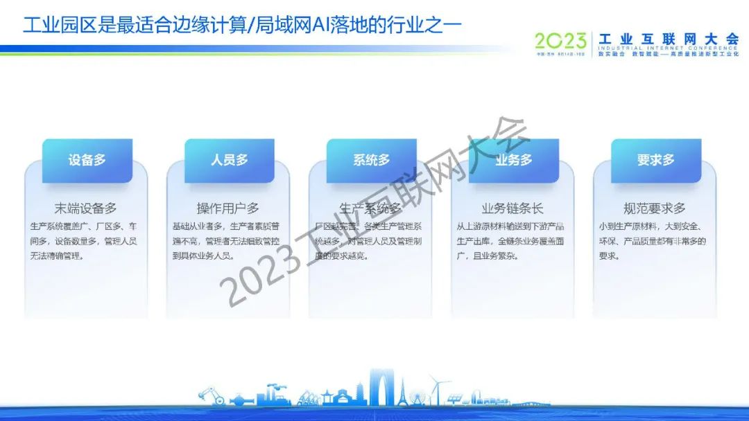 夏明超表示,隨著IoT設(shè)備呈指數(shù)增長,云端數(shù)據(jù)壓力持續(xù)加大。作為AI重要載體,邊緣計算正逐步興起,工業(yè)園區(qū)是最適合邊緣計算/局域網(wǎng)AI落地的行業(yè)之一。通過數(shù)字化能力賦能產(chǎn)業(yè)智能,連接園區(qū)的設(shè)備、人員、數(shù)據(jù)、業(yè)務(wù),服務(wù)不同客戶不同階段的多樣化需求。