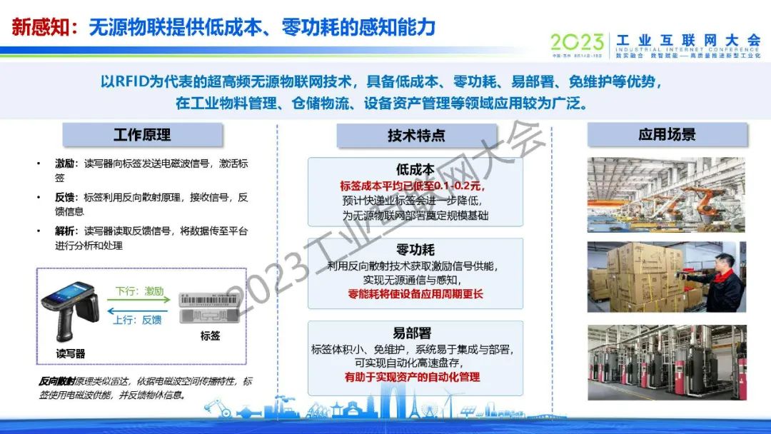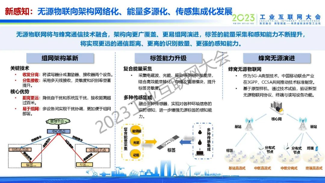“無源物聯(lián)網(wǎng)將與蜂窩通信技術(shù)融合,架構(gòu)向更廣覆蓋、更易組網(wǎng)演進,標簽的能量采集和感知能力不斷提升,將實現(xiàn)更遠的通信距離、更高的識別數(shù)量、更強的感知能力?!?/p>