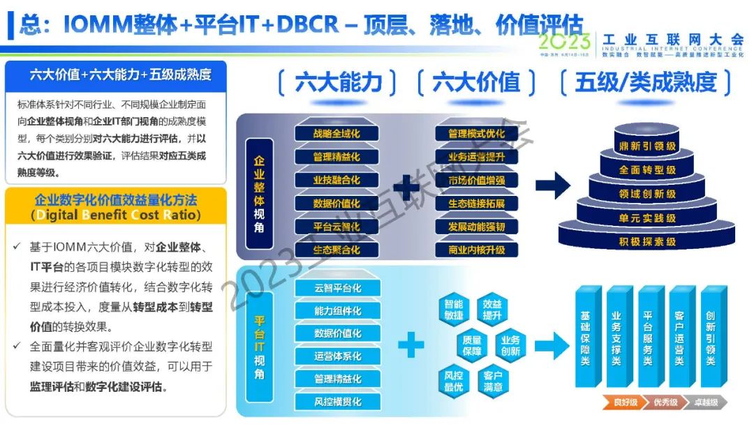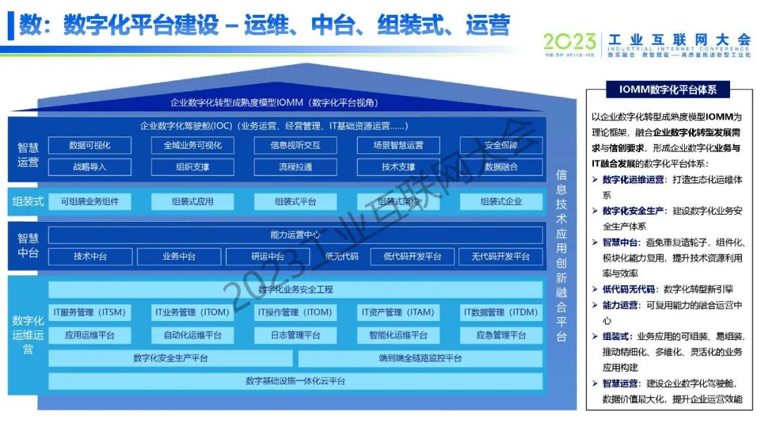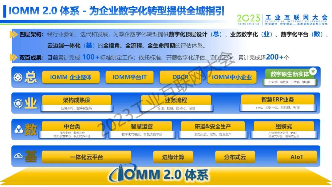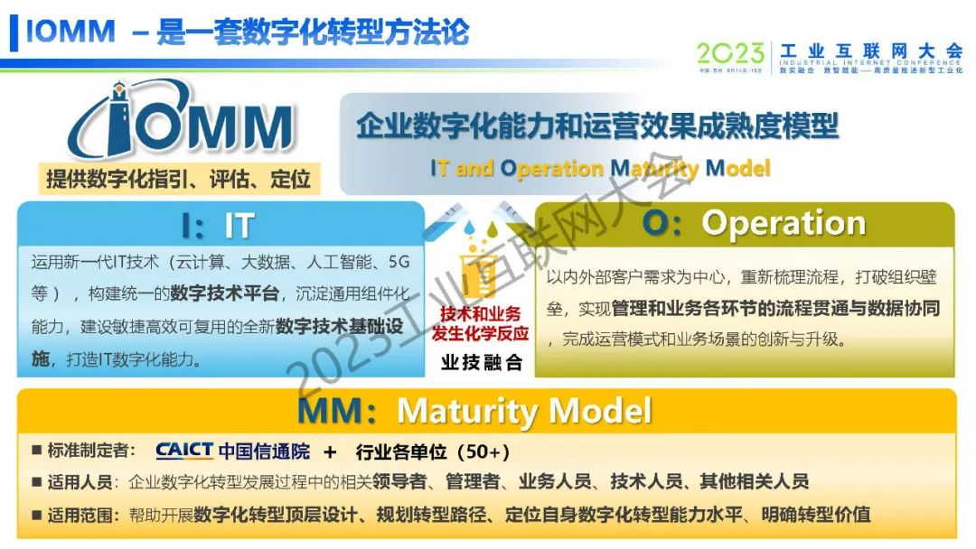 6月14日,在2023工業(yè)互聯(lián)網(wǎng)大會(huì)“工業(yè)互聯(lián)網(wǎng)助力企業(yè)數(shù)字化轉(zhuǎn)型高端論壇”上,中國信息通信研究院云計(jì)算與大數(shù)據(jù)研究所副所長栗蔚發(fā)表了《企業(yè)數(shù)字化能力和運(yùn)營效果成熟度模型IOMM 2.0發(fā)布與解讀》的主題演講。