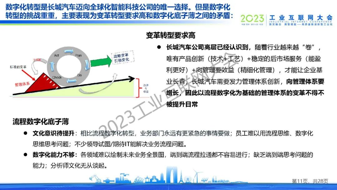 陳龍表示,快速變化的汽車行業對數字化有了新的要求,長城汽車正在從中國傳統車企向全球化智能科技公司轉型,需要發力管理體系創新,向管理體系要增長,因此以流程數字化為基礎的管理體系的變革不得不被提升日常。他希望通過業務、流程、組織、數字化四位一體的管理體系,讓業務IT更加融合、更好協同。