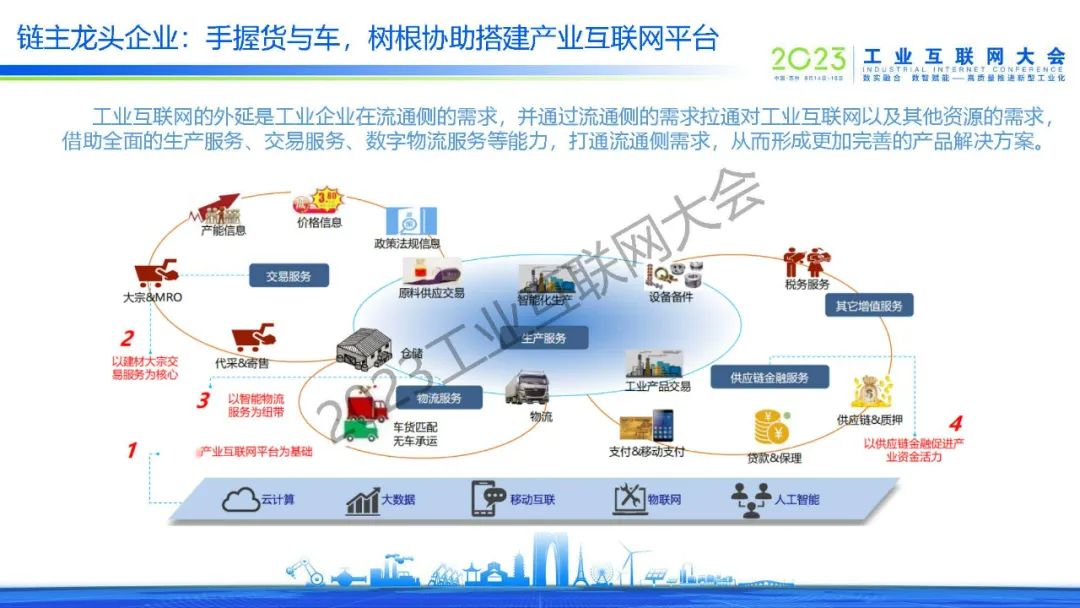 “工業互聯網的外延是工業企業在流通側的需求,并通過流通側的需求拉通對工業互聯網以及其他資源的需求,借助全面的生產服務、交易服務、數字物流服務等能力,打通流通側需求,從而形成更加完善的產品解決方案?!?/p>