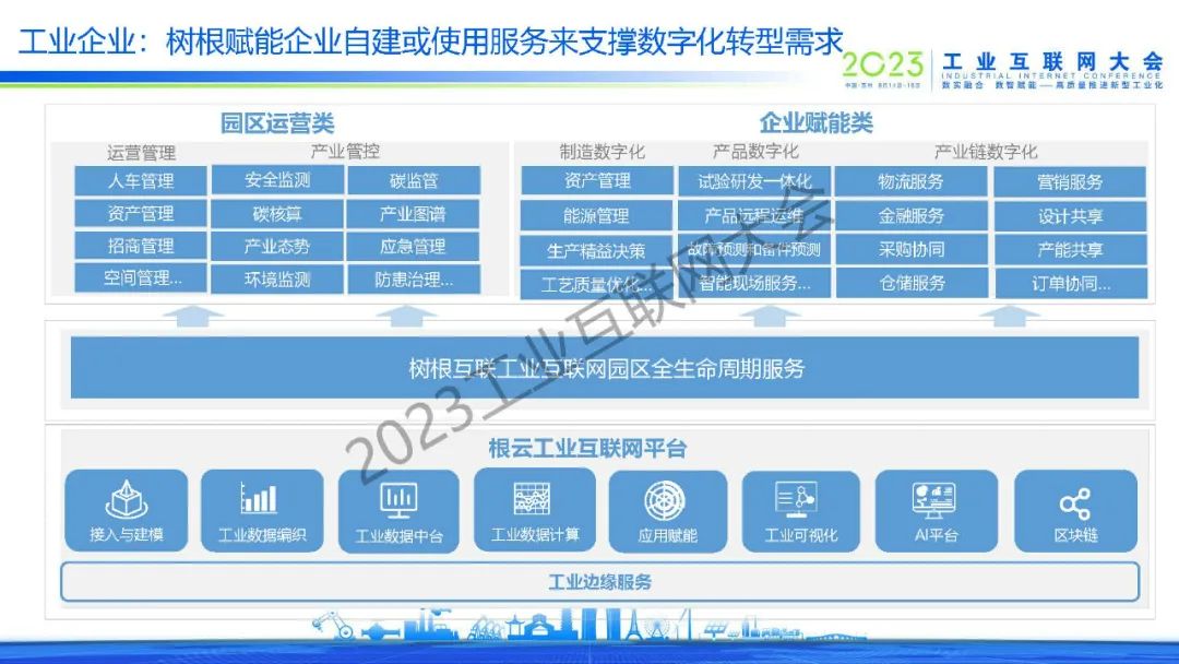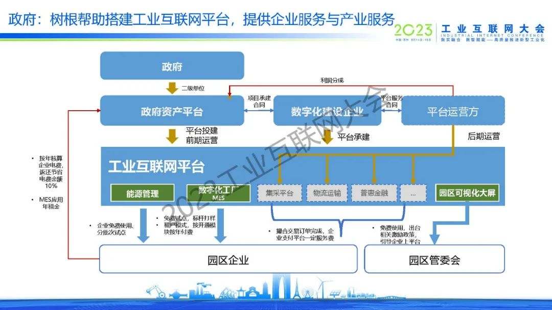 丁曉炯介紹了工業互聯網園區運營的五大模式。數根幫助政府搭建工業互聯網平臺,提供企業服務與產業服務,幫助園區資產方/運營方幫助搭建服務平臺,提供個人服務與企業服務,幫助鏈主龍頭企業搭建產業互聯網平臺,幫助工業企業賦能企業自建或使用服務來支撐數字化轉型需求。