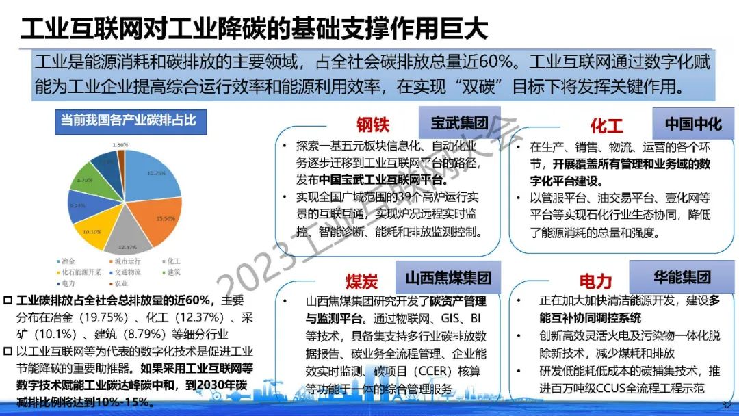 “以工業互聯網等為代表的數字化技術是促進工業節能降碳的重要助推器。如果采用工業互聯網等數字技術賦能工業碳達峰碳中和,到2030年碳減排比例將達到10%-15%?!?/p>