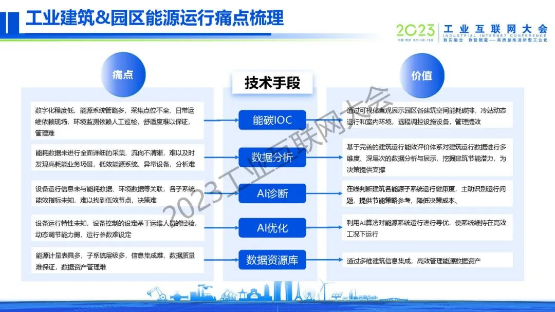 朱暉指出,工業(yè)作為能源消耗與碳排放的重點(diǎn)行業(yè),在雙碳工作中一直被高度關(guān)注與高優(yōu)管理。它就像一把雙刃劍,一方面問題影響嚴(yán)重,另一方面一旦能夠有效解決,帶來的作用也是巨大且顯著的。針對工業(yè)建筑&園區(qū)能源運(yùn)行痛點(diǎn),騰訊數(shù)字孿生重點(diǎn)解決決策優(yōu)化和決策可視問題,具備全真映射、實(shí)時計(jì)算、數(shù)據(jù)驅(qū)動、泛在連接的四大特點(diǎn)。