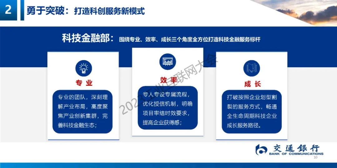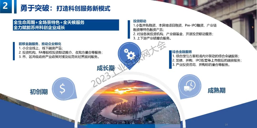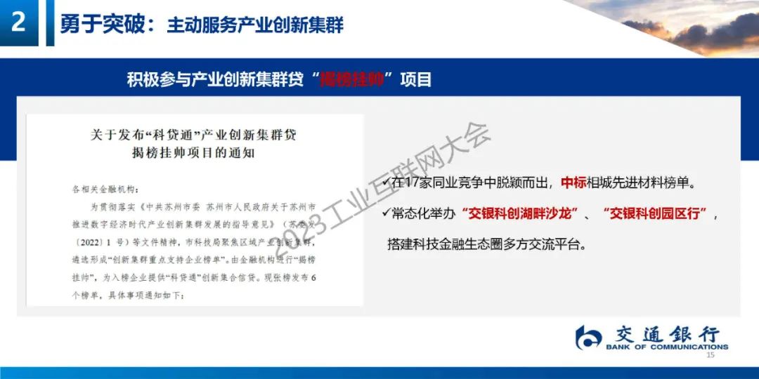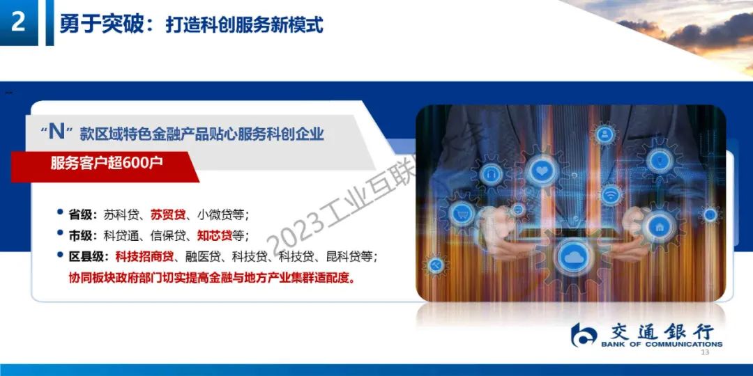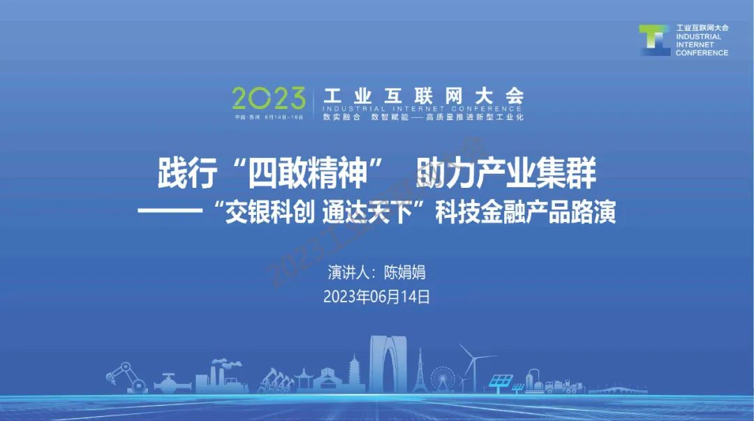 6月14日,在2023工業(yè)互聯(lián)網(wǎng)大會(huì)“工業(yè)互聯(lián)網(wǎng)產(chǎn)融推進(jìn)論壇”上,交通銀行蘇州分行普惠金融事業(yè)部副總經(jīng)理陳娟娟發(fā)表了《踐行“四敢精神”助力產(chǎn)業(yè)集群——“交銀科創(chuàng) 通達(dá)天下”科技金融產(chǎn)品路演》的主題演講。