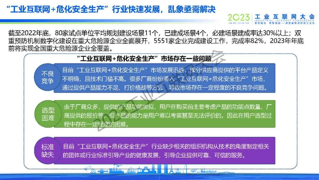 6月15日,在2023工業互聯網大會“工業互聯網+危化安全生產數字化轉型論壇”上,中國信息通信研究院泰爾終端實驗室戰略部業務主管/高級工程師朱玥發表了《“工業互聯網+危化安全生產”評估體系構建》的主題演講。