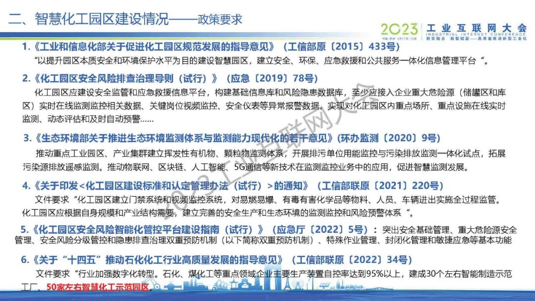 6月15日,在2023工業(yè)互聯(lián)網(wǎng)大會“工業(yè)互聯(lián)網(wǎng)+危化安全生產(chǎn)數(shù)字化轉(zhuǎn)型論壇”上,中國石油和化學工業(yè)聯(lián)合會化工園區(qū)工作委員會處長馬從越發(fā)表了《智慧化工園區(qū)建設(shè)進展與應用實踐》的主題演講。