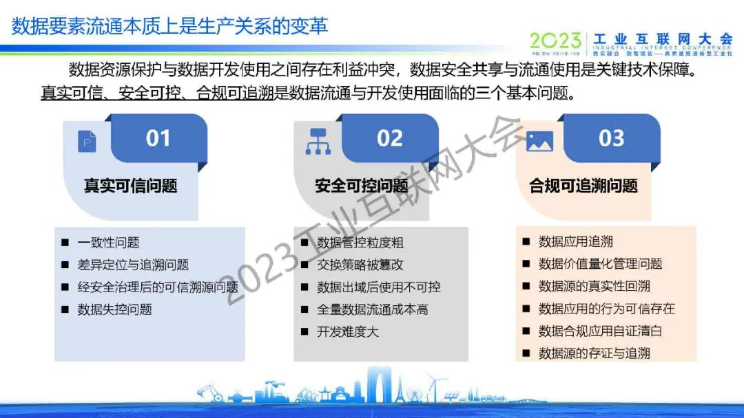 “數據資源保護與數據開發使用之間存在利益沖突,數據安全共享與流通使用是關鍵技術保障。真實可信、安全可控、合規可追溯是數據流通與開發使用面臨的三個基本問題。”
