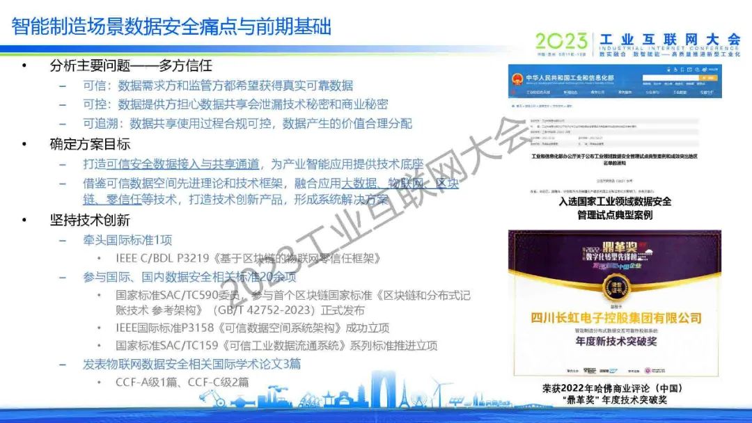6月14日,在2023工業互聯網大會“工業數據共享流通創新發展論壇”上,四川長虹電子控股集團有限公司 信息安全實驗室首席科學家唐博發表了《智能制造領域數據空間應用探索與實踐》的主題演講。