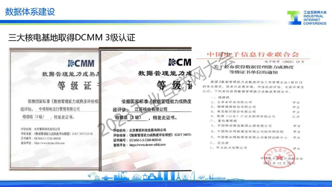 劉旭嘉介紹中國核電工業互聯網平臺(DHP),2019年-2022年完成平臺一期建設,構建以云計算、大數據、人工智能、物聯網等新一代信息技術為基礎的數字化轉型技術底座,支撐自主軟件的開發。核能工業數據創新目標是支撐公司全面數字化轉型,實現全業務域數字創新。