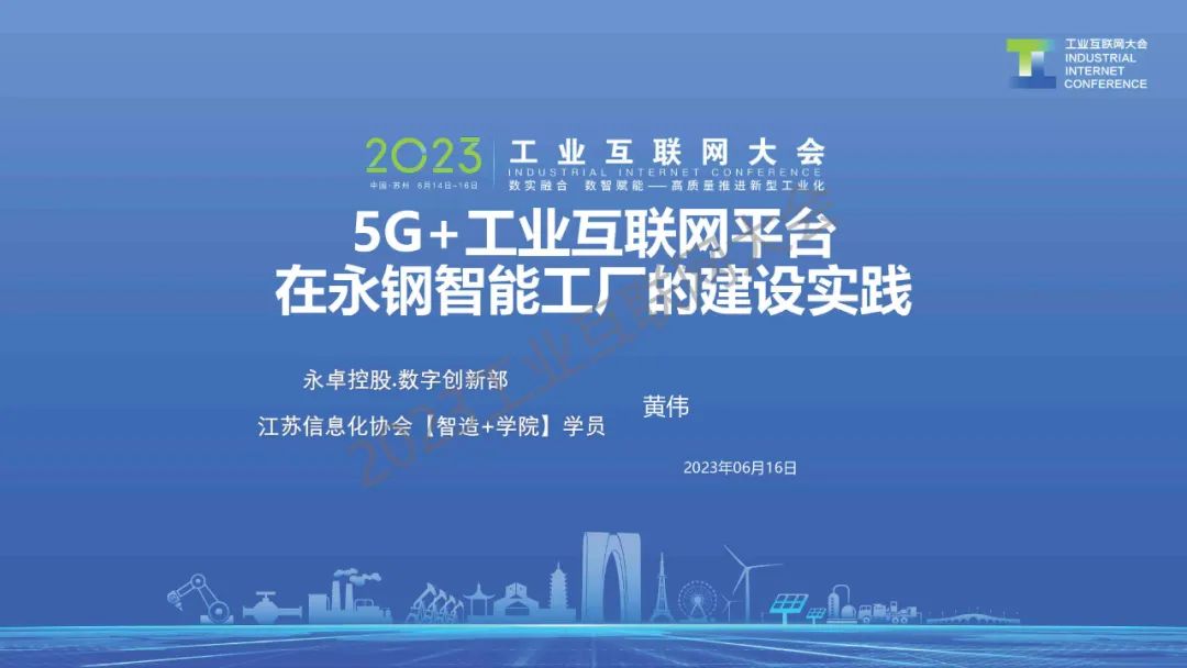 6月16日,在2023工業(yè)互聯(lián)網(wǎng)大會(huì)“工業(yè)互聯(lián)網(wǎng)與鋼鐵行業(yè)融合應(yīng)用論壇”上,江蘇永鋼集團(tuán)有限公司技術(shù)總監(jiān)黃偉發(fā)表了《5G+工業(yè)互聯(lián)網(wǎng)平臺(tái)在永鋼智能工廠的建設(shè)實(shí)踐》的主題演講。
