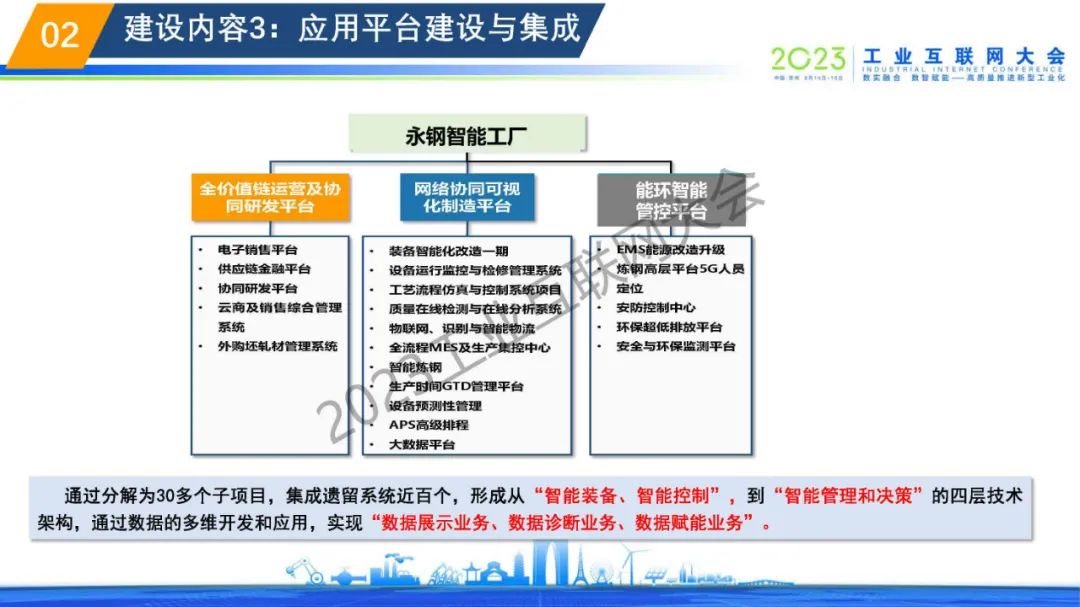 黃偉表示傳統(tǒng)的大體量、粗放式、弱研發(fā)、輕環(huán)保的管理模式,讓普通鋼鐵企業(yè)難以滿足市場需求,經(jīng)濟(jì)效益低,難以產(chǎn)生積極性,特種鋼材行業(yè)發(fā)展陷入困局,嚴(yán)重制約國內(nèi)高端制造業(yè)的發(fā)展。永鋼智能工廠通過分解為30多個(gè)子項(xiàng)目,集成遺留系統(tǒng)近百個(gè),形成從“智能裝備、智能控制”,到“智能管理和決策”的四層技術(shù)架構(gòu),通過數(shù)據(jù)的多維開發(fā)和應(yīng)用,實(shí)現(xiàn)“數(shù)據(jù)展示業(yè)務(wù)、數(shù)據(jù)診斷業(yè)務(wù)、數(shù)據(jù)賦能業(yè)務(wù)”。