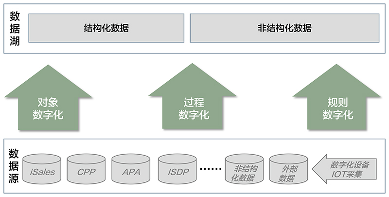 數(shù)據(jù)是數(shù)字時代新的生產(chǎn)要素。只有獲取和掌握更多的數(shù)據(jù)資源,才能在新一輪的全球話語權競爭中占據(jù)主導地位。華為供應鏈充分認識到數(shù)據(jù)在生產(chǎn)過程中的重要價值,并從三個方面推動業(yè)務數(shù)字化,構建供應鏈的數(shù)據(jù)底座(如圖1)。
