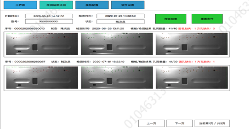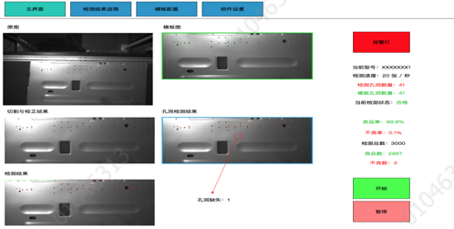 9)模板匹配:與鈑金件的標準模板進行基于位置的匹配,得到孔洞是否正確的結果。