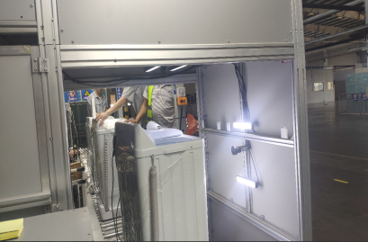 整個總裝裝配按照SKD剝離的思路,能實現SKD剝離的工序全部實現剝離,包含箱體預裝,面板線、小部件預裝。箱體預裝線體實現了箱體自動翻轉,懸掛鏈自動上箱體,自動下箱體,重體力崗位實現無人化,且專機設備的狀態可以實現實時的監控,有異常及時報警。下線采用機器人自動堆碼,實現自動掃描入庫。衣聯網重慶研究院整合各方資源,采用RFID技術實現產品的自動出入庫,實現對洗衣機產品進出庫實時盤點的智能化系統,解決出入庫數量誤差和盤點效率低的問題,解決在成品箱經過通道時因掃描光線、打印品質造成的漏掃誤掃問題。