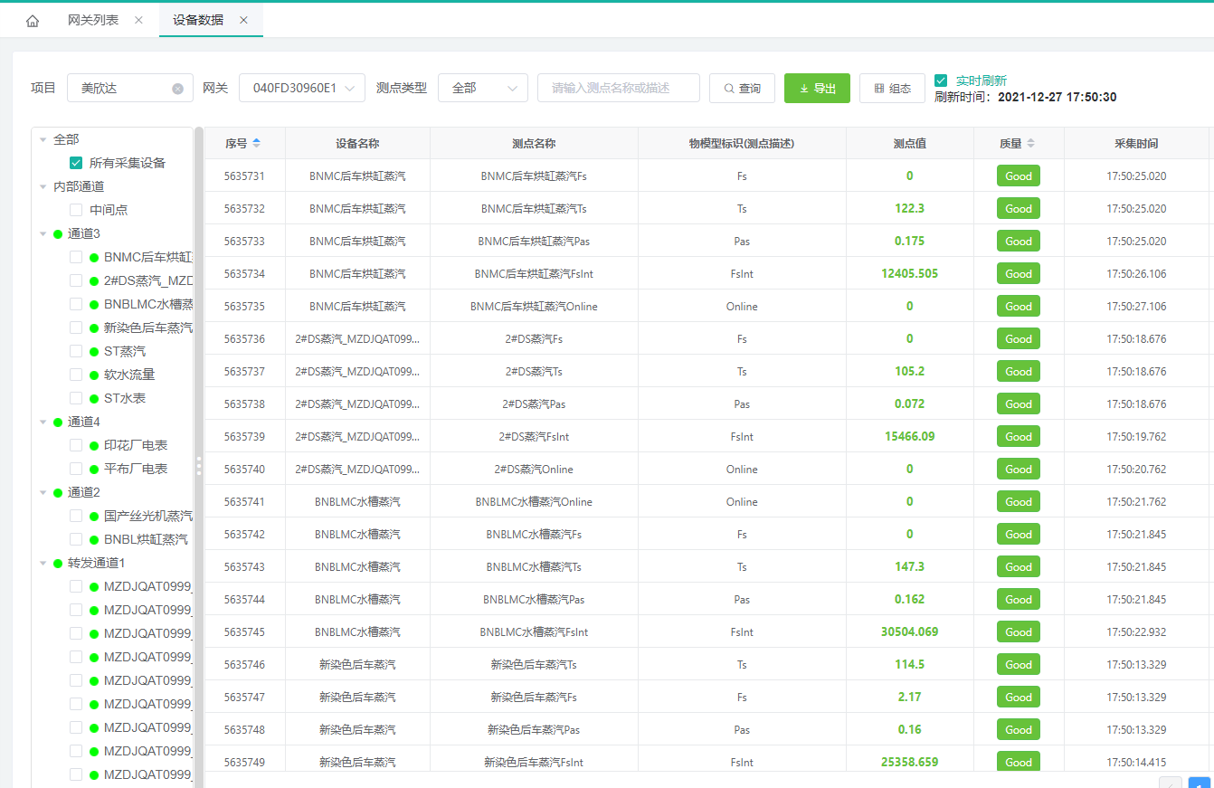 物聯接入改造:實現存量205臺儀表的統一入口采集(通訊采集、系統對接、移動手抄);采集過程對接10+通訊協議(儀表老舊、通訊協議缺失,通過報文監聽方式破解);預期實現全廠無線方式數據穩定上傳(丟包率<0.38%);實現網關遠程固件升級與調試配置。