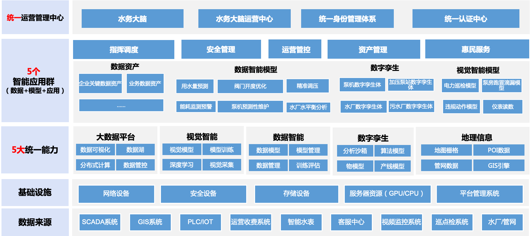 2建設五個統一的信息化能力平臺,打造水務行業數字化、智能化的統一能力。