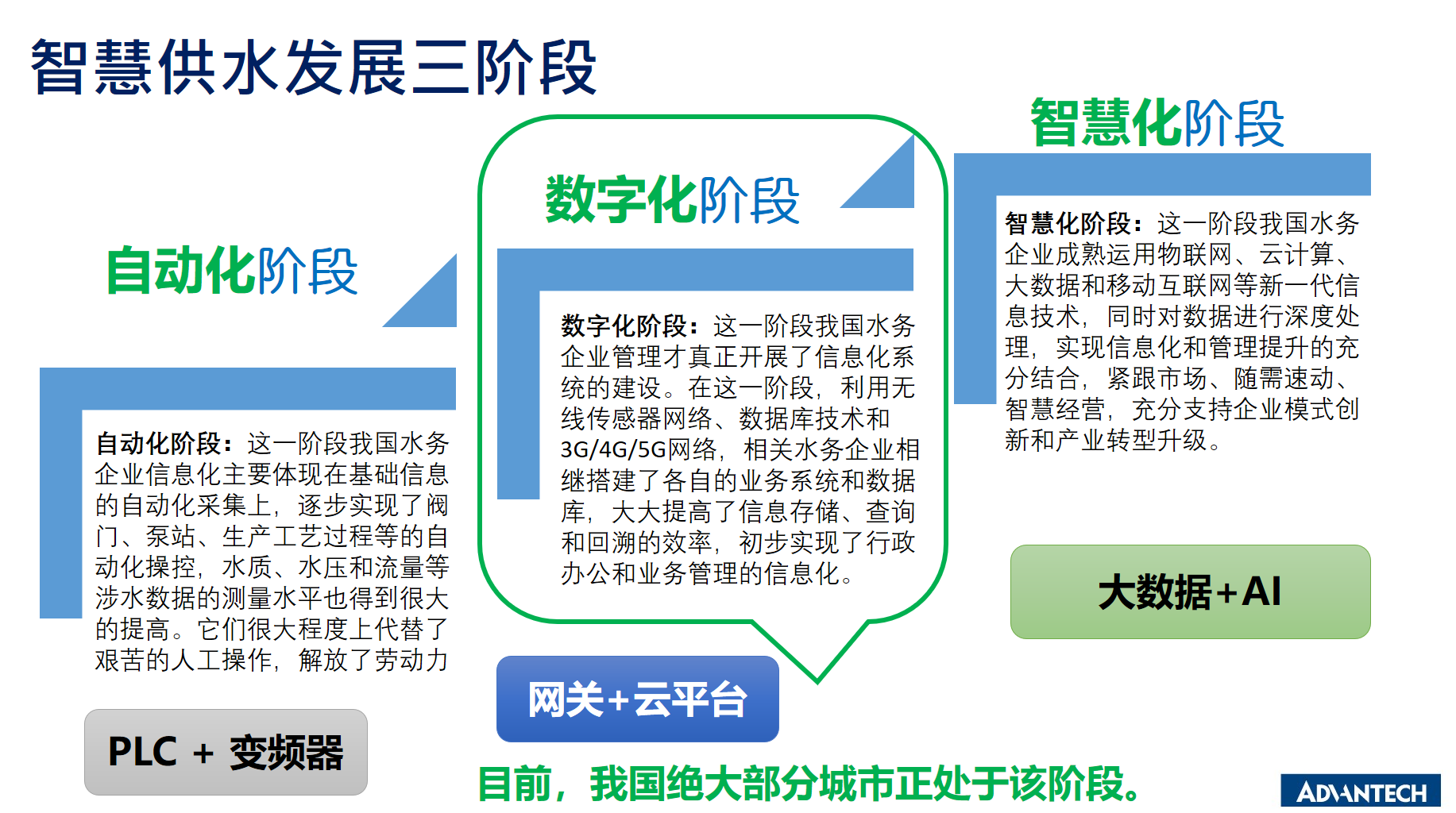 如圖3所示,目前大多供水管理系統(tǒng)還處于“數字化”階段,研華科技會一如既往的協(xié)同專業(yè)伙伴,借助工業(yè)云平臺、AI、邊緣智能等技術與產品方案,共同加速推動供水智慧化應用落地。