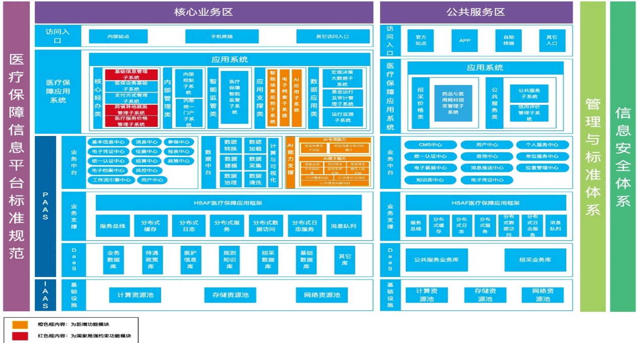 項目設計了基礎網絡設施建設、云支撐平臺和數據中臺建設、醫保信息數據庫,配置覆蓋內部管理、核心經辦、 招采價格、智能監管、數據應用、公共服務和應用支撐等七大類應用系統,統一省市兩級規范、數據標準和安全運維體系,并與國家醫保平臺打通。