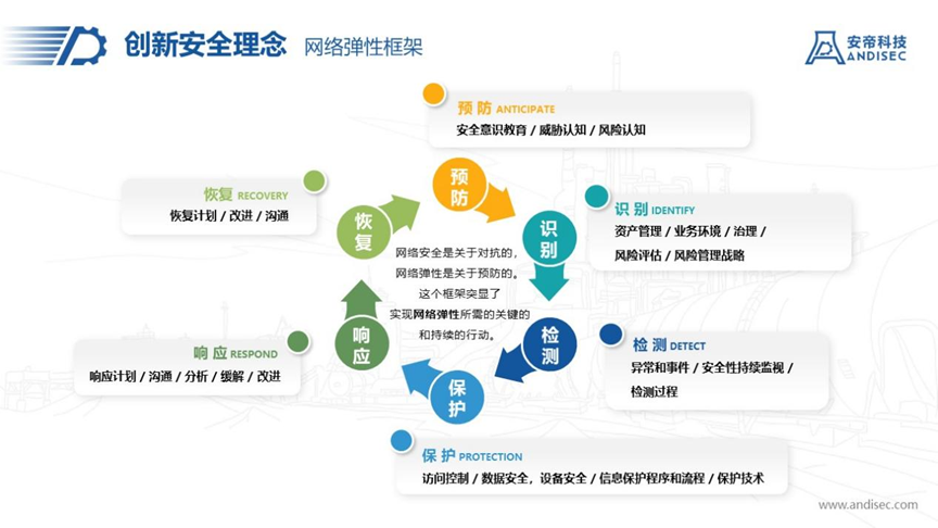 網絡彈性穩增強:代表目標;安帝科技認為,有效網絡安全防御的本質是達到某種程度的網絡彈性,其終極目標是業務彈性或任務彈性。網絡彈性和網絡安全是相關但不同的兩個概念,主要區別在于,一是關注的防御階段不同;網絡彈性突出了面向失效的設計;二是保障目標不同;網絡安全要滿足CIA三性(保密性、完整性、可用性),安全或者不安全。而網絡彈性則以系統的業務目標交付為終極目標,不介意系統安全或者不安全。網絡安全看系統是非黑即白的話,網絡彈性看系統更像是黑白共同體。網絡彈性更關注于業務。