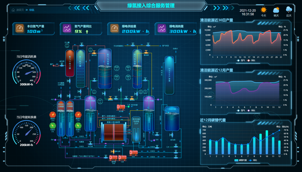 以雙碳為目標的源網荷儲一體化和多能互補水平不足,新能源的綜合服務支撐體系不健全,缺少集約化、規模化運維管理支撐,制約新能源產業的快速發展,亟需結合阜新地區資源優勢,打造一個集中式與分布式發電儲能并舉,風、光、氫、儲多能互補的智慧能源體系。