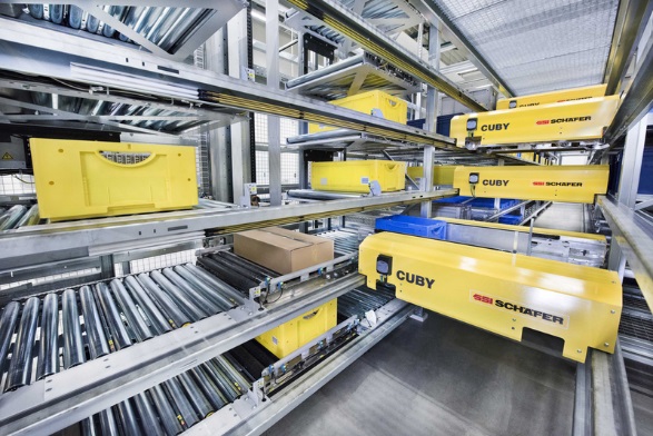 在堆貨貨架區(qū)域,傳統(tǒng)采用人工或人工操作叉車取放貨物。自動(dòng)貨架Shuttle(見圖1-6),根據(jù)后臺(tái)指令負(fù)責(zé)在立體貨架區(qū)域的貨物裝卸操作。